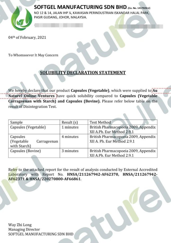 Au naturel sacha inchi extra juga terbukti menggunakan 100% vegi capsul yang mempunyai tahap larutan lebih cepat